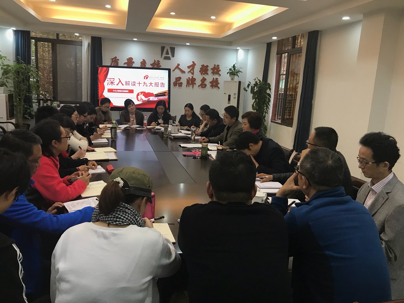 学院党委委员交流了学习心得。学院纪委书记柳世平从全面从严治党出发,提出了一个工作办法、例行两个重点、三级审计监督、四位一体监督、五个工作制度;副院长刘浪从所分管的招生处、团委、国资处、财务处、组织部等部门职能出发,结合十九大报告精神提出了贯彻落实要求;副院长胡莉从建好理论武装阵地和提升师生三感(获得感、幸福感、安全感)等方面提出了自己的思路;副院长向治中以医疗、住房、环境等民生问题为出发点,谈了对十九大报告的学习领悟;党委委员王梅围绕从平凡岗位上出发,胸怀大局、做实工作等方面交流了自己的心得。