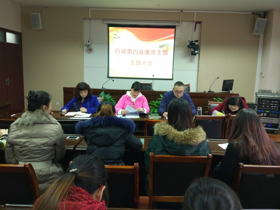 12月27日上午,行政第四直属党支部支部大会在江北校区培训教室举行,支部全体党员、发展对象、入党积极分子参加了此次大会。会议由支部书记张玲主持。