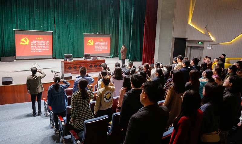 宣讲会上,学院全体党员集体重温入党誓言,庄严宣誓。