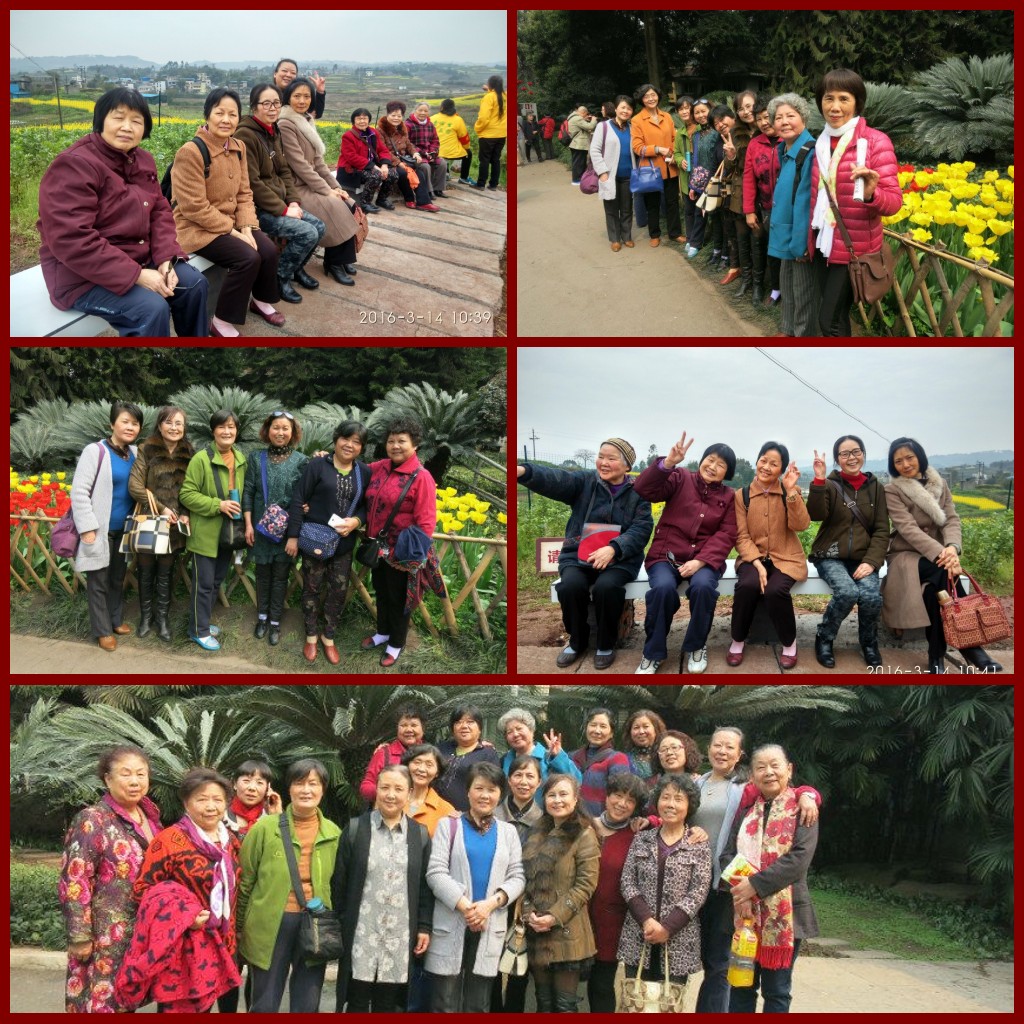 3月3日,在渝北花卉园,迎着明媚的春光,十万株郁金香陆续绽放,品种繁多,颜色缤纷,姿态各异,朵朵惹人喜爱……其他植物也看起来爽心悦目,垂柳迎风招展,贴杆梅娇艳开放,各种树木郁郁葱葱。见此良辰美景,退休女职工们纷纷拿出手机、相机、自拍杆,或合影、或自拍,争相留下美丽倩影。殷切的问候,亲密的谈话,虽然时不时被穿梭玩赏的游人打断,仍然没有阻拦她们的兴致和热情。