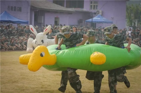 大一的新生们经过6天高强度的体能训练之后精神状态都显得十分疲惫,但他们仍坚挺的伫立在操场上,高质量的完成了当天早上的军训内容。当老师拿着麦克风在主席台上宣布:“校园趣味运动会正式开始!”是整个操场瞬间沸腾起来了。