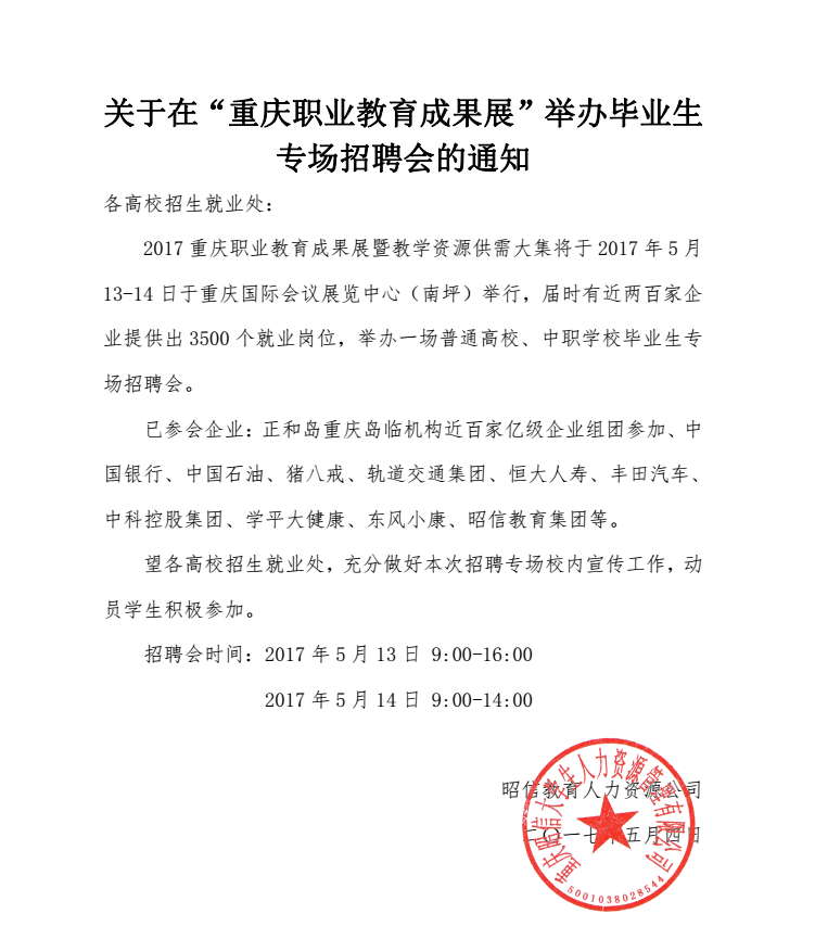 关于在“重庆职业教育成果展”举办毕业生专场招聘会的通知