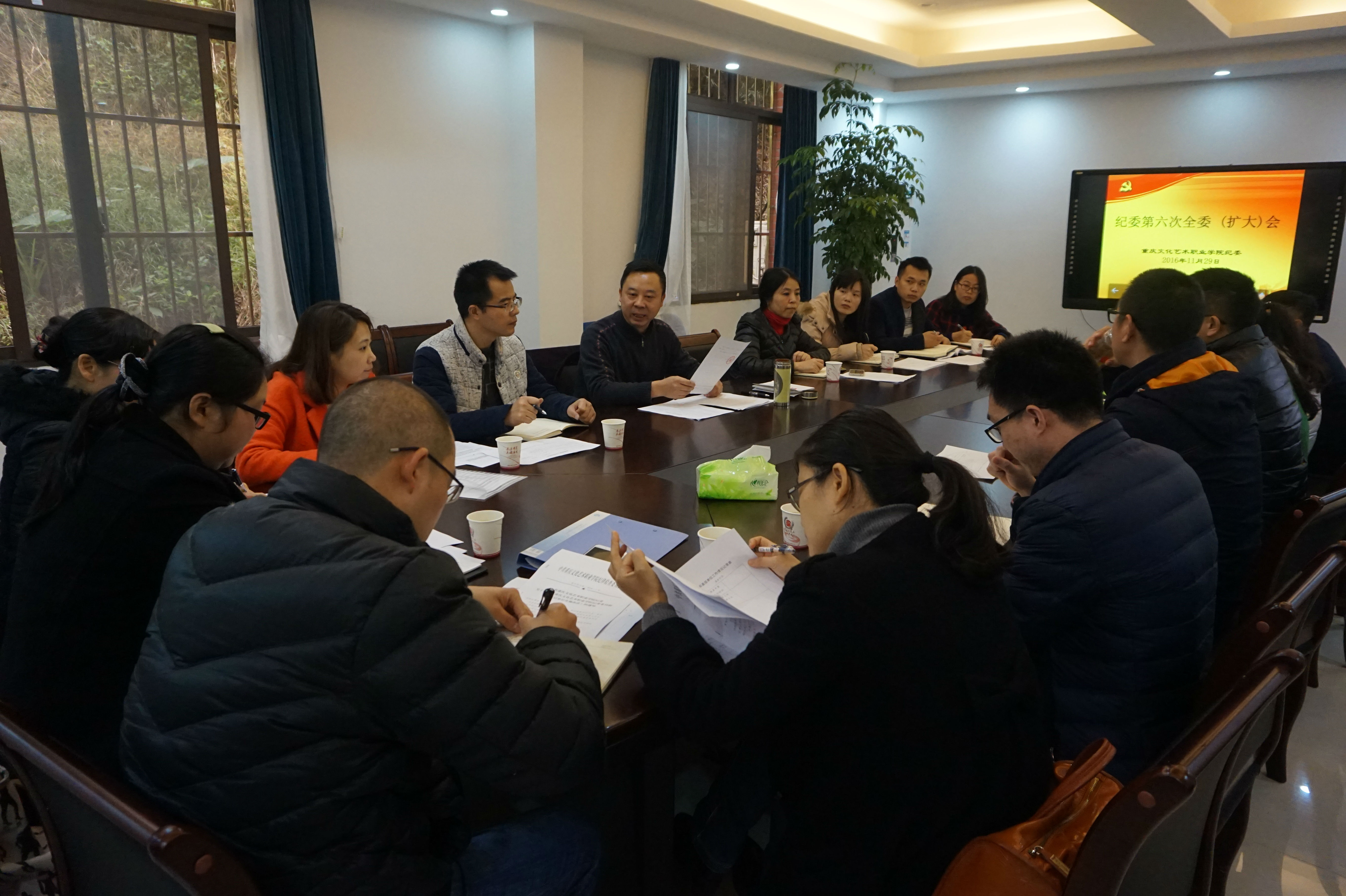 会议还组织学习了《中共重庆市纪委驻市文化委纪检组关于工作分工及职责的通知》等文件主要精神。部署了学院纪委委员联系点工作,学院纪委委员、总支(支部)兼职纪检委员向学院纪检监察室按月报送信息(线索)等工作。学院全体纪委委员,艺校党总支有关负责同志,学院纪检监察室(纪委办、审计处)全体同志,学院各总支(支部)兼职纪检委员共20余人参加会议。