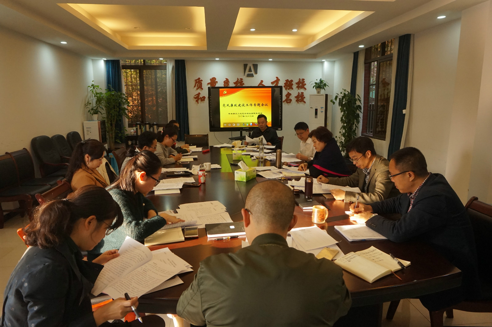 10月31日下午,学院党委在巴南校区召开党风廉政建设工作专题会。学院党委书记宋延军主持会议并讲话。党委副书记、院长吴小兰,纪委书记柳世平,副院长刘浪、向治中,重庆艺校副校长刘引、徐平参加会议。学院纪委委员、学院纪检监察室(纪委办、审计处)全体同志列席会议。