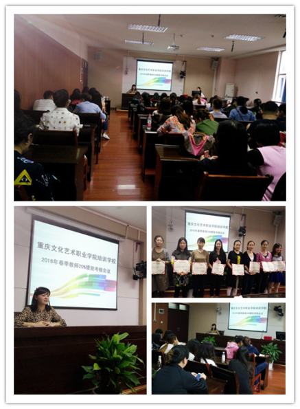 会上,培训学校负责绩效考核工作人员王芳首先逐一展示了此次考核的评分标准及全体教师在各项考核中的具体情况与得分,根据严格按照考核内容与标准对全体教师的考核结果,评出“优秀教师”9名,并由培训学校刘主任为获奖者颁发荣誉证书。紧接着,刘主任指出:“此次考核本着公平、公正、公开的原则,严格按照考核内容与标准全面、客观地评价教师工作实绩。这一集考核、监督、制约、激励及责任追究为一体的岗位绩效考核机制既是对优秀教师工作的肯定,也是为了激励广大教师学会总结自身不足,学习他人工作良好经验,努力追求自身工作的提升完善。为提升我校教师教学工作的质量与水平,我部门将持续完善并采用这一考核机制,使其成为推动我部门教师队伍建设的总抓手,并进一步保证教师管理工作的科学化与规范化。”最后,刘主任还对下阶段的重点工作作了明确部署与安排,特别重申了此次第六届“新苗杯”展演活动的各环节安排,并强调务必按照规划的时间安排做好各方面准备并保证质量。