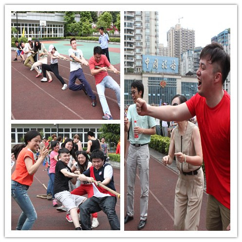 趣味运动会由背夹篮球、八人九足、眩晕大PK、拔河比赛等四个项目组成。尽管烈日炎炎,但团员青年依然兴致盎然,争分夺秒练习比赛项目,认真进行热身等赛前准备。背夹篮球、八人九足、眩晕大PK大家玩的不亦乐乎,紧张激烈而又有趣的比赛引得大家阵阵欢笑。最后的拔河比赛更是精彩纷呈,拉拉队在一旁加油助威,场面十分热闹。
